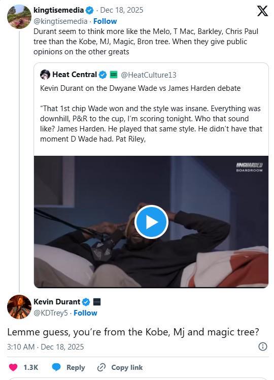杜兰特:韦德和哈登都能赢球,但哈登没有韦德那种高光时刻